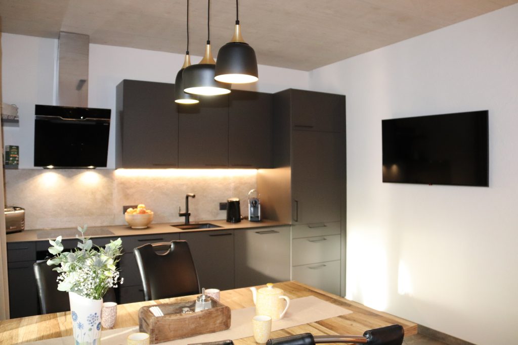 • vollausgestattete Küche: Kühlschrank mit Gefrierfach, Nespresso-Kapselmaschine, Toaster, Wasserkocher, Geschirrspüler, Ceranfeld-Herd, Backofen, Geschirr, Besteck, Kochbesteck, Töpfe, Pfannen, Gläser, Wein- & Sektgläser, Tassen, Thermoskanne, uvm.