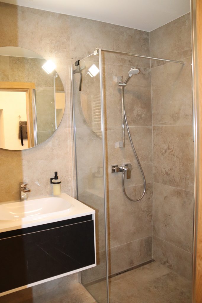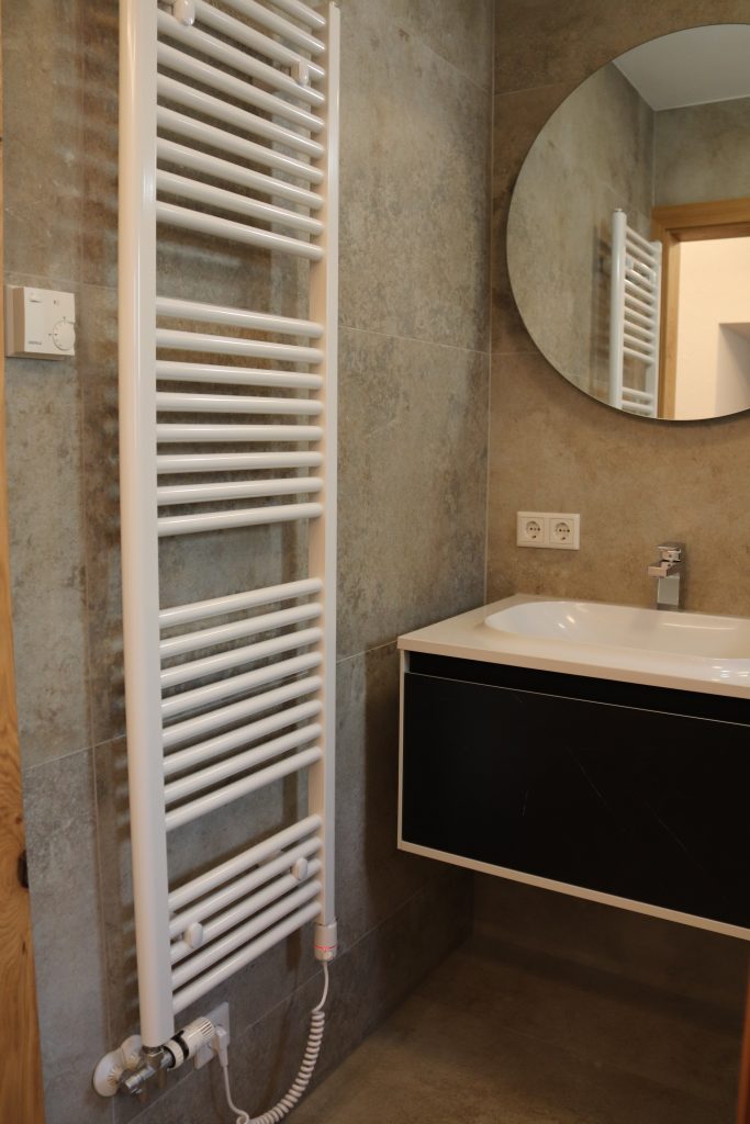 • 1 Bad mit Dusche, Waschbecken und Handtuchtrockner